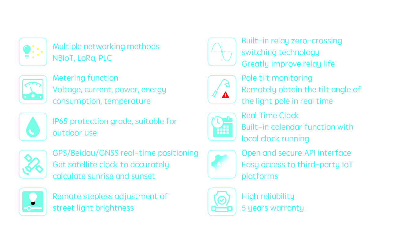 Remote Monitoring & Control | Fully cloud-integrated with AREYLight’s smart city platform. Monitor voltage, current, power, temperature, failures, and energy usage. |