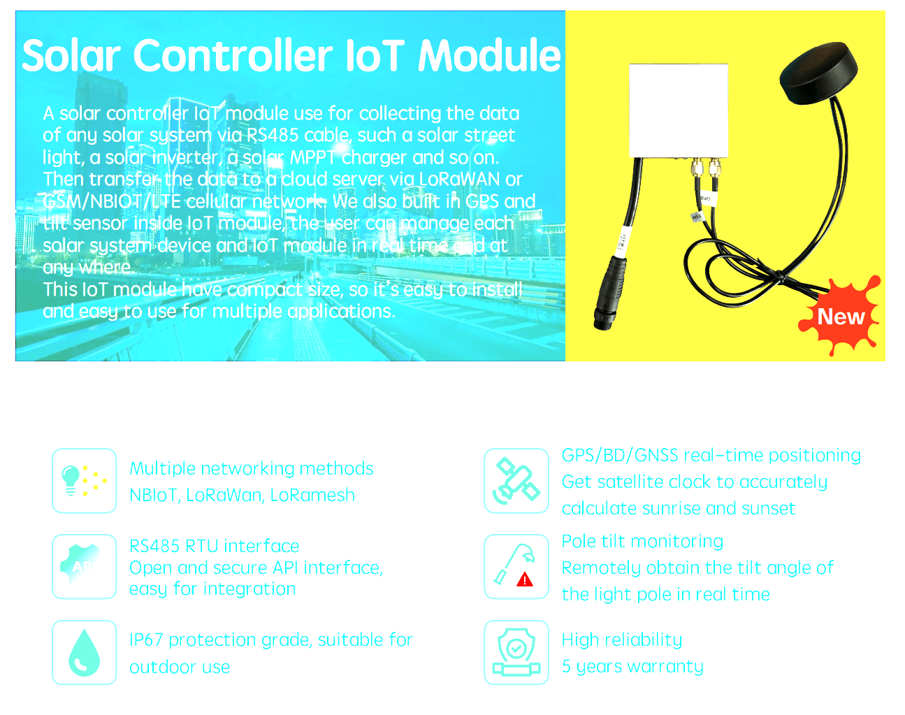 Weatherproof & Resilient | IP67 waterproof rating, -40°C to +70°C operating range. 10KV lightning protection. Maintenance-free industrial design. |
