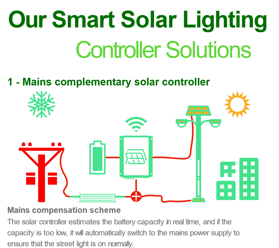 Built-in Battery & Solar Panel | Lithium-ion battery pack + high-efficiency mono-crystalline solar panel with MPPT charging system. Operates off-grid with 3–5 days autonomy. |