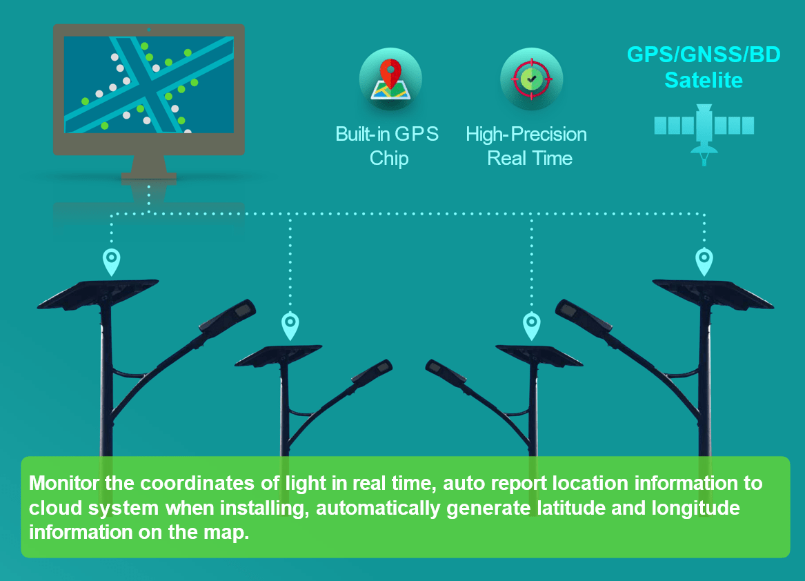 GPS + Tilt Detection | Real-time GPS coordinates upload during installation. Pole tilt monitoring to detect physical impact or vandalism. |