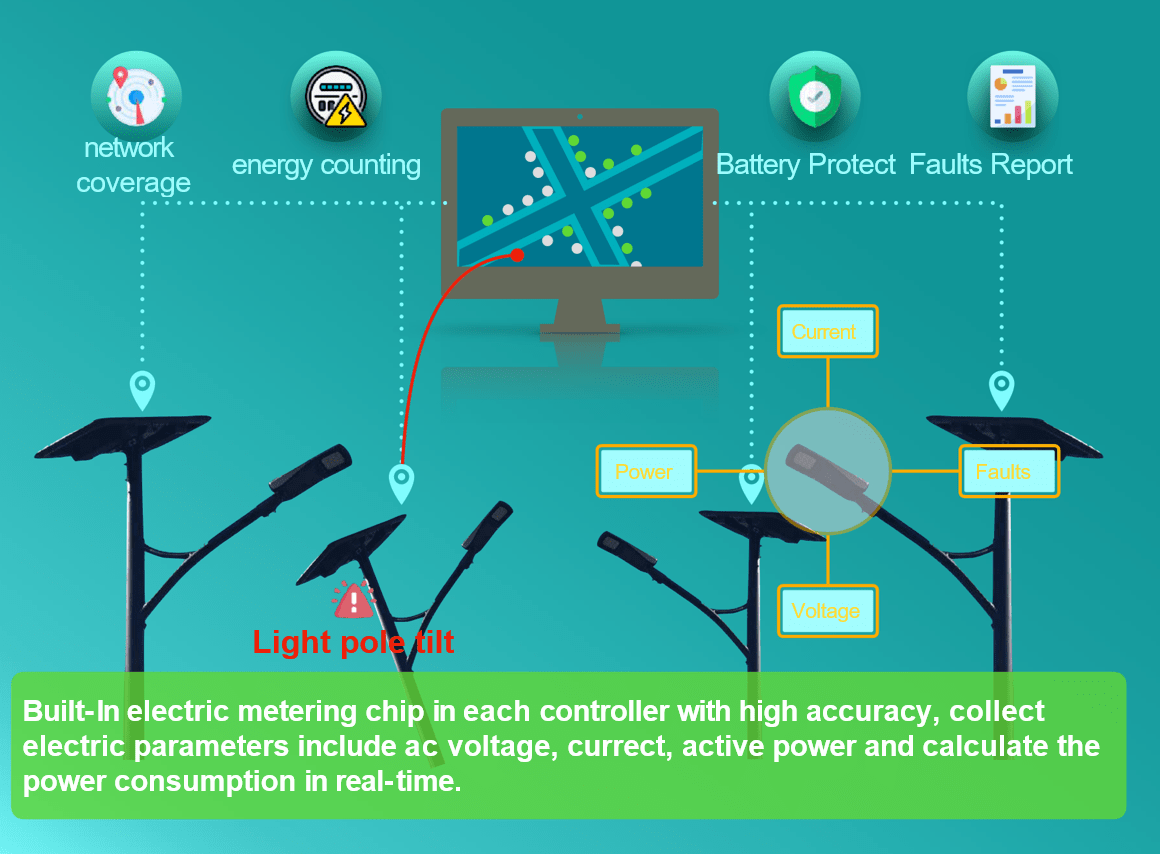 Data Reporting | Voltage, Current, Power, Fault Alerts, Energy Metrics, Pole Tilt, Location |